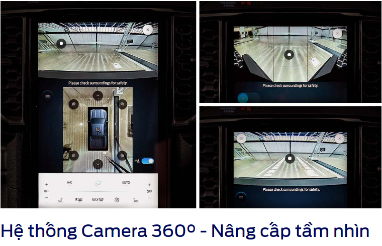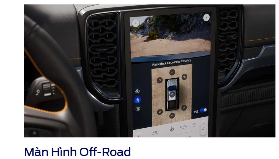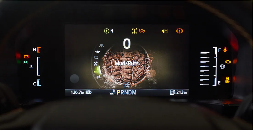 Màn hình dành riêng cho chế độ off-road cung cấp tính năng chia màn hình để hiển thị đồng thời hình ảnh từ camera phía trước, kết hợp cùng màn hình kỹ thuật số hiển thị độ nghiêng và dốc của xe. Người lái có thể thao tác kích hoạt các chế độ off-road khác nhau trên màn hình, bao gồm hệ thống kiểm soát đổ đèo và khóa vi sai.